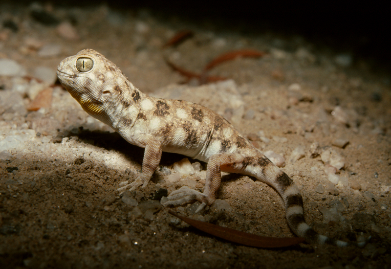Most unusual of all, there were also large numbers of adult and young Common Barking Geckos (Ptenopus garrulus) dashing from their burrows, snatching up allates, and then running back with their prey to their shelters.