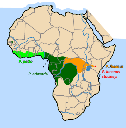 17. April 2018: Potto subspecies have now been raised to full species level. The approximate ranges are given on the map here.