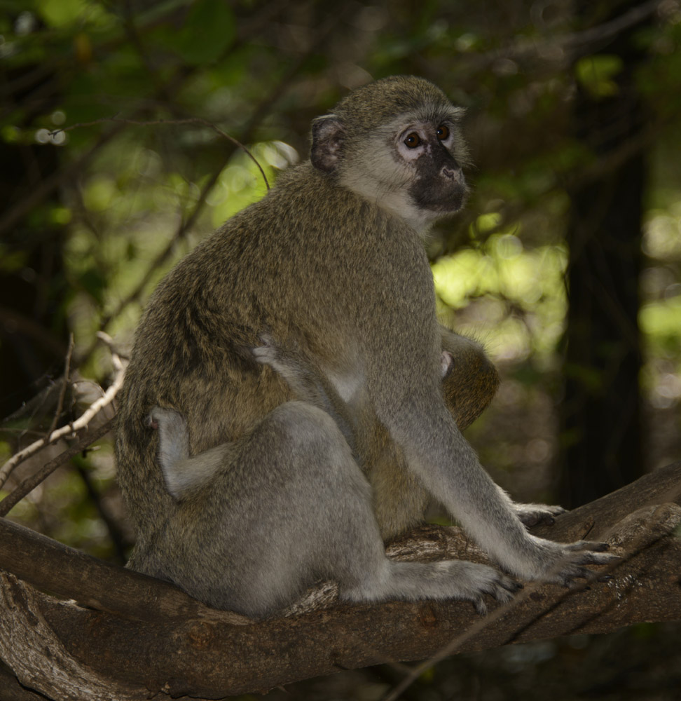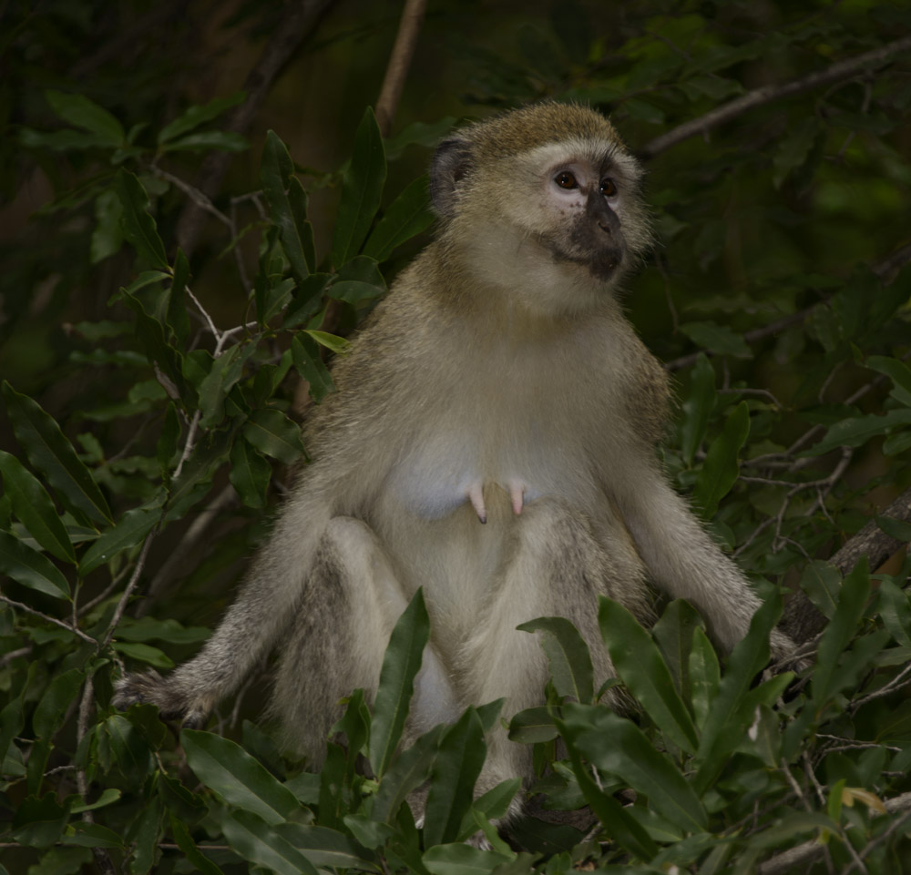 A troop of these monkeys was encountered at the Drotsky Cabins campsite along the Okavango River in the Botswana Panhandle. This is the first time we have encountered this monkey outside Zambia. Previously placed as a subspecies of the Vervet Monkey (Chlorocebus pygerythrus), there are now 6 accepted species within the 'vervet monkey' group. Apart from the obvious physical differences, such as flesh-coloured skin on the face, in our experience they have a more gentle temperament than the Vervet.