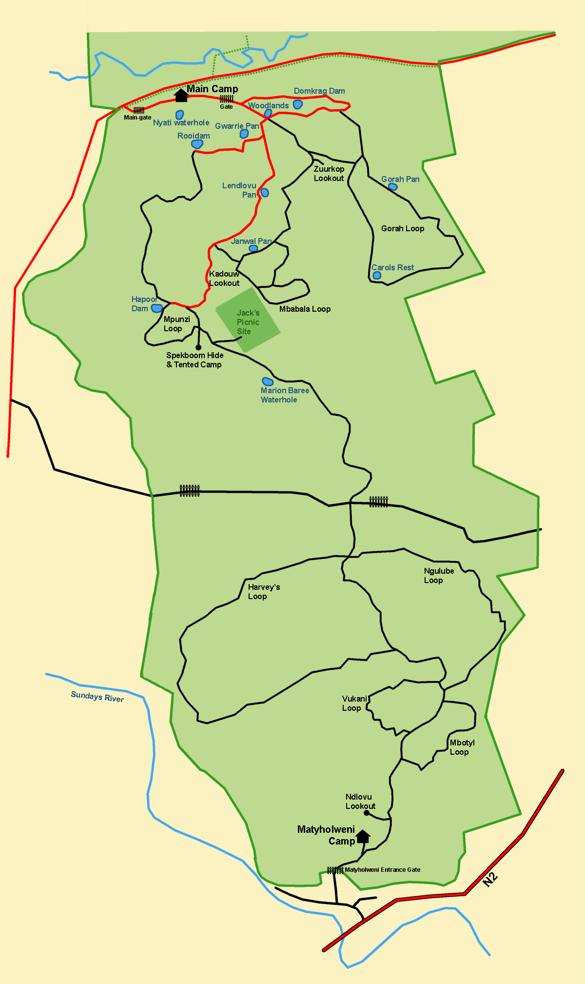 2. The Spekboom Tented Camp is located at the Spekboom hide in the heart of the northern game area. A camp and caravan park is being developed at the Matyholweni Rest Camp.