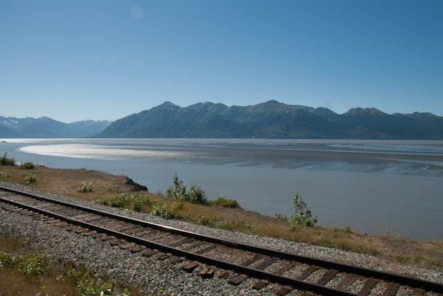 Mudflats and railway line along northern shore of Turnaround Arm of Cook Inlet